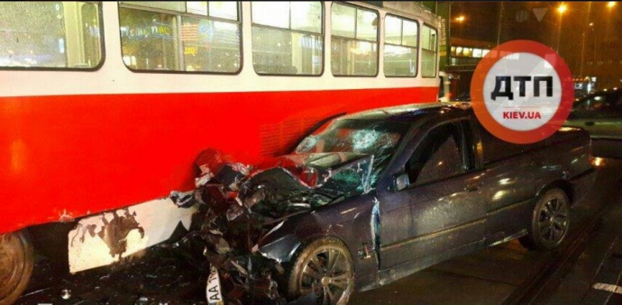 У Києві на проспекті Перемоги ввечері 11 грудня легковий автомобіль врізався у трамвай з пасажирами.