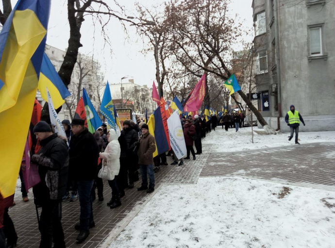 У середу зранку велика колона людей у Києві пройшла організованою ходою з боку площі Слави у напрямку Кабінету міністрів.