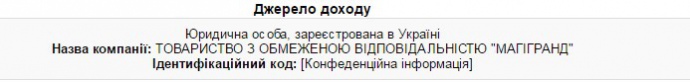 Згідно з ним, джерелом доходу виступило ТОВ "Магігранд" (Вінниця), основним власником якого є дружина прем'єра Олена Гройсман.