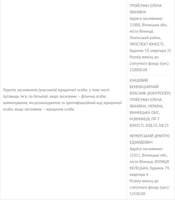 Згідно з даними держреєстру підприємств, ТОВ "Магігранд" було створено в квітні 2008 року. Її статутний капітал - 262,5 тис. грн. Олена Гройсман належить 80%, а ще 20% – директору компанії Дмитру Немерскому, який очолює її з липня 2016 року.