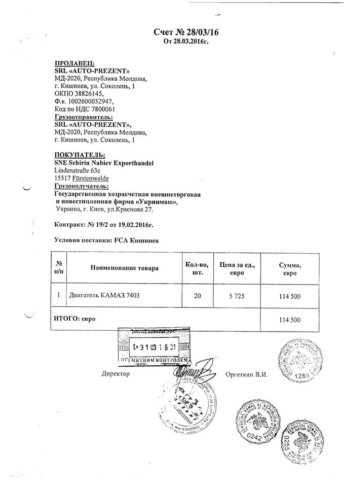 "Двигуни, куплені через Ширина Набієва, громадянина Німеччини, продали українській армії у 2.5 рази дорожче їх вартості", - заявив екс-глава Одеської ОДА та зазначив, що продавцем стало підприємство SRL "Auto Present" (Молдова).