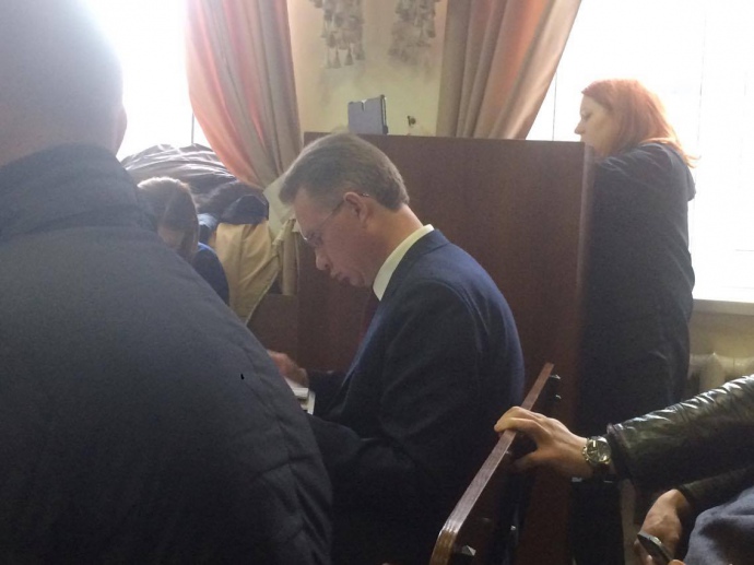На засіданні суду присутні кілька охоронців Охендовського. За підрахунками журналістів, їх четверо.