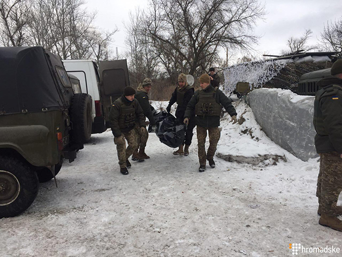 У місті Щастя Луганської області українській стороні були передані тіла двох військових, які загинули на Світлодарській дузі 18 грудня.