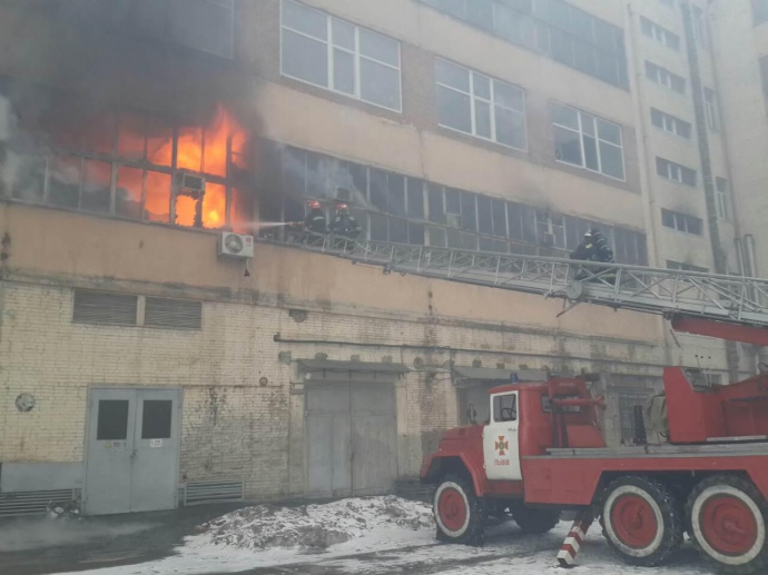 У Львові горять виробничі приміщення заводу "Електрон", рятувальники намагаються загасити пожежу.