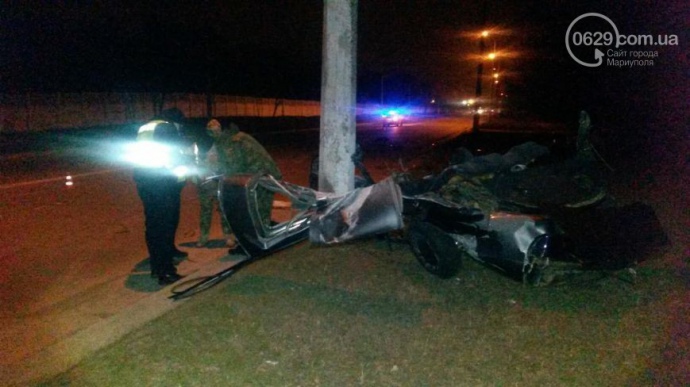 "Автомобіль "Ніссан" на величезній швидкості врізався у стовп. ... Удар був такої сили, що автомобіль розірвало навпіл - задня частина легковика залишилася біля стовпа, а передня - відлетіла на кілька метрів. Автомобіль виявився без даху. На місці працюють співробітники поліції, а також перебувають військові", - йдеться у повідомленні.