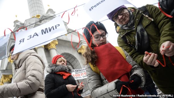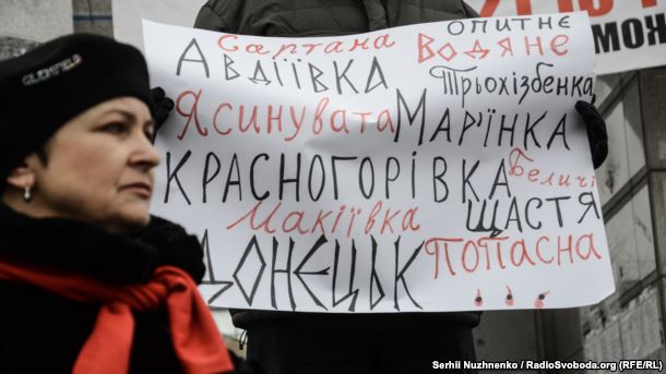 Як повідомляє "Радіо Свобода", 4 лютого близько 30 активістів принесли фотографії обстріляного міста і пов’язали червоні стрічки на знак солідарності із постраждалими.