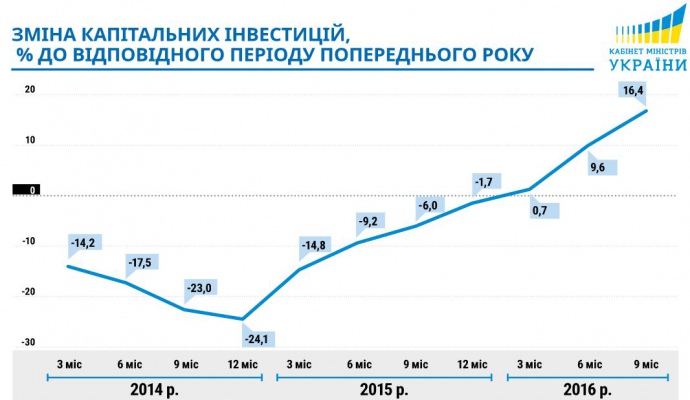 За аналогічний період минулого року "ми маємо 16,4% збільшення інвестицій у капітал".