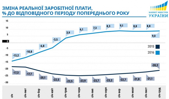 Гройсман сказав, що у 2016 році номінальна зарплата збільшилася на 23%, але реальна зарплата, враховуючи інфляцію, зросла на 9%.