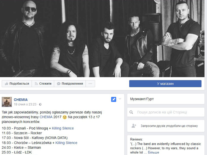 Розклад туру гурту CHEMIA, в якому виступає Балчун, можна знайти на офіційній сторінці в Facebook.