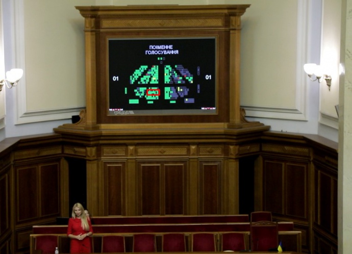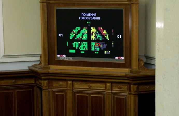 На табло системи "Рада" видно, що "за" проголосували обидва місця.