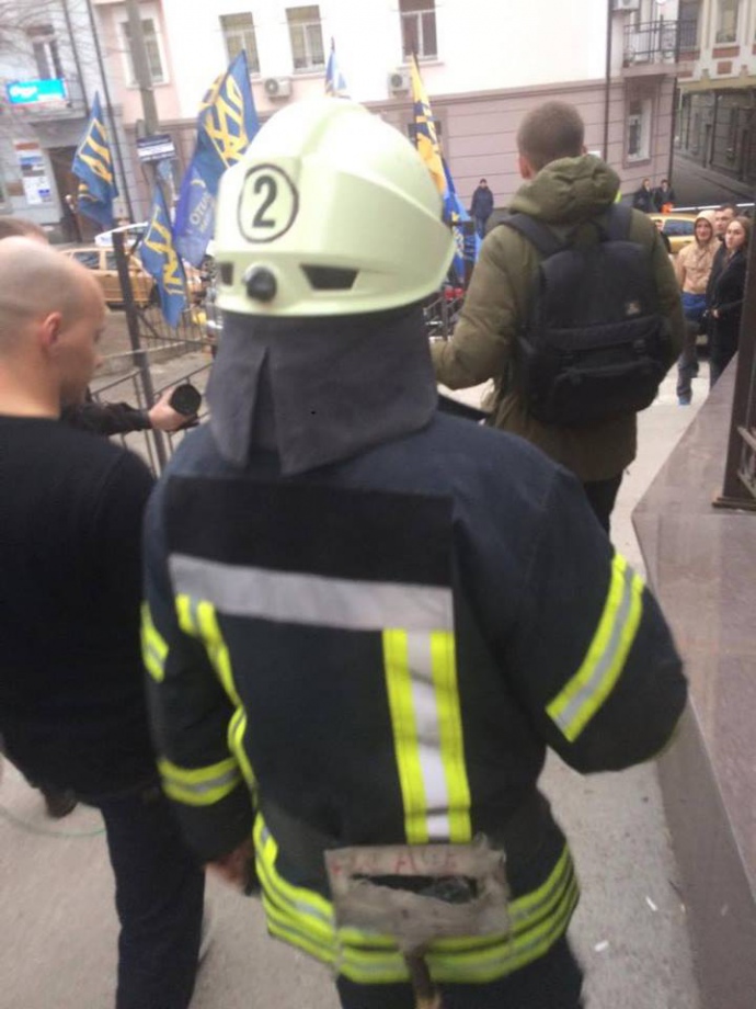 Наразі з будівлі суду проведуть евакуацію. На вулиці неподалік стоїть пожежна машина.