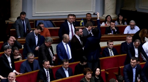 На відео голосування видно, як народний депутат Сергій Лещенко знімає на смартфон момент голосування депутатів з "гальорки" БПП. Однак йому перешкоджає знімати колега по фракції Гліб Загорій.