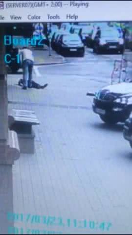 На відео зафіксовано, як за екс-депутатом та його охоронцем рухається чоловік у капюшоні, а потім впритул стріляє у Вороненкова, а коли той падає, - у його охоронця.