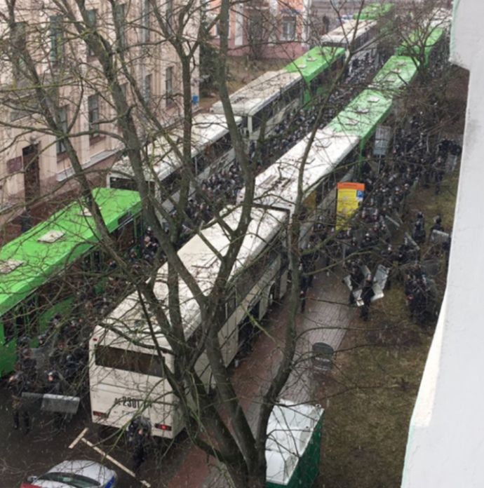 Як відомо, 25 березня у Білорусі проходять акції, присвячені Дню Волі. У Бресті та Гродно акції дозволені владою, у Вітебську і Гомелі заходи несанкціоновані. На трасах у напрямку Мінська з самого ранку чергували патрулі ДАІ та автоматники, у центр міста було стягнуто автозаки.