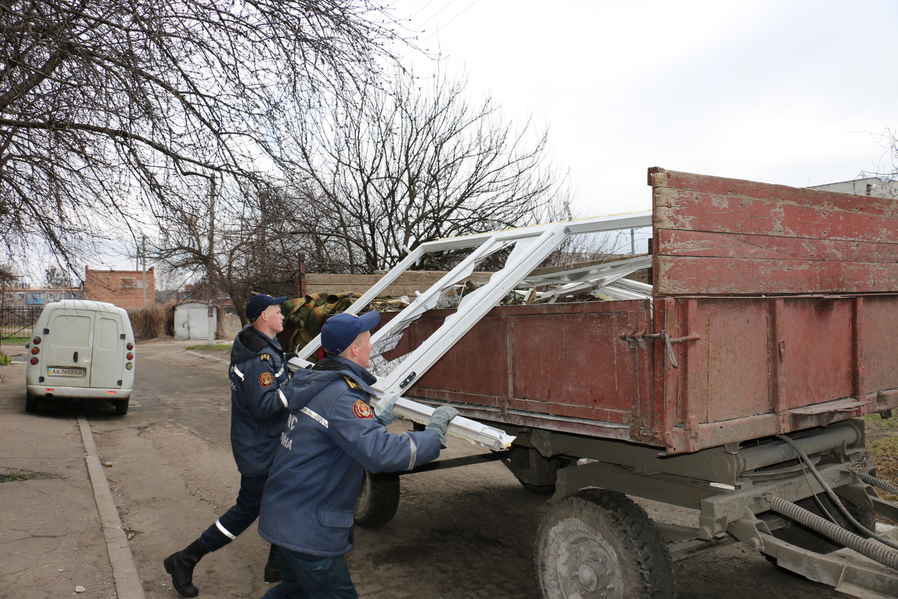 "Зокрема, на прибудинкових ділянках, дахах житлових будинків організоване вивезення будівельного сміття, рештків віконних рам та шиферу, прибирається навколишня територія", - йдеться в повідомленні.