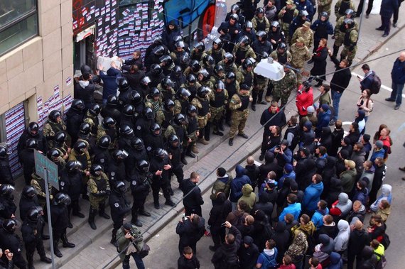 Поліція відтіснила активістів націоналістичної організації "Національний корпус" від заблокованого ними офісу "Сбербанку" по вулиці Донець-Захаржевського у Харкові.