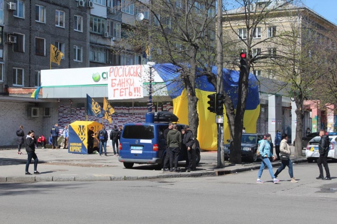 Націоналісти заблокували відділення російського "Сбербанку" в центрі Дніпра.