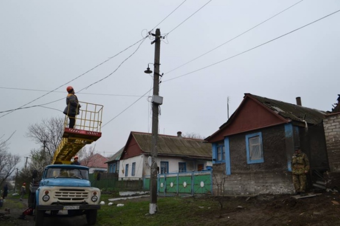 Електромонтери 18 квітня почали працювати над ліквідацією наслідків останнього обстрілу бойовиками Авдіївки.