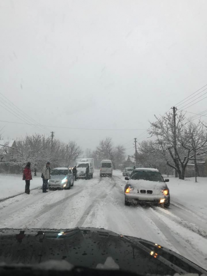 "А це Дніпро. Колапс... Аеропорт замело. На дорогах все стоїть. Водіям не рекомендую їхати в цьому напрямку: в'їзд і виїзд в Дніпро з боку Запоріжжя заблокований з двох сторін через великий затор", – написав він.