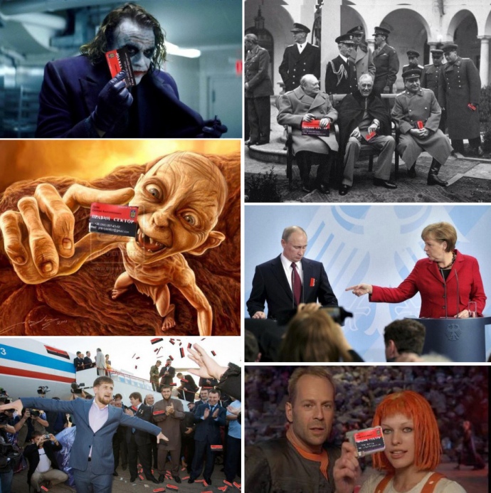 Одним із головних "доказів" стала нібито візитка керівника ПС Дмитра Яроша, знайдена в згорілому автомобілі, яка одразу ж перетворилася на мем.