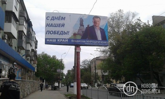 Також у Маріуполі невідомі залили фарбою рекламний щит із привітаннями від політичних партій "Опозиційний блок" і "Наш край".