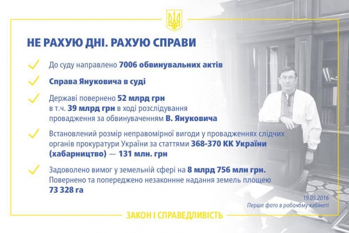 Генеральний прокурор Юрій Луценко опублікував у Facebook досить лаконічний звіт про рік своєї роботи на цій посаді.
