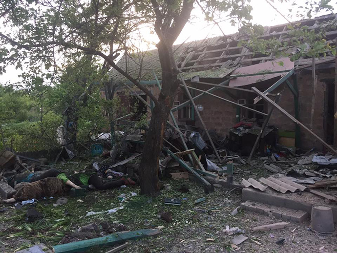 Голова поліції Донеччини В'ячеслав Аброськін опублікував фото будинку в приватному секторі Авдіївки, на подвір'ї якого в суботу внаслідок обстрілу загинули четверо мирних мешканців.
