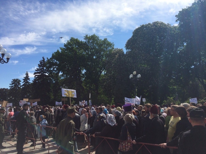Під Верховною Радою відбувається молебень-протест священників і прихожан Української православної церкви Московського патріархату.