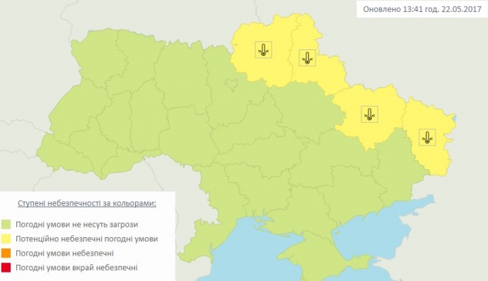 "Вночі 23 травня в Чернігівській, Сумській, Харківській, Луганській областях на поверхні ґрунту місцями заморозки 0-2°", - йдеться у повідомленні.