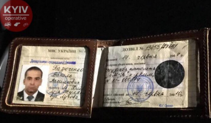Як повідомляється у Facebook-спільноті "Киев оперативный", у машині ГПУ було виявлено техпаспорт на машину з позначкою реєстрації на ГПУ, дозвіл на носіння травматичної зброї (гумостріл) до 2019 року та пропуск у ГПУ, оформлені на ім'я Василя Базюченка. Також у машині було виявлено відкупорену пляшку пива.