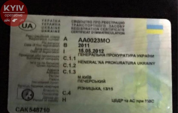 В салоні автомобіля поліція виявила та вилучила перепустку до будівлі ГПУ, посвідчення водія, свідоцтво про реєстрацію транспортного засобу.