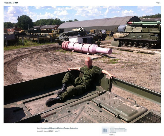 "Фотографія механіка була знята в парку техніки бригади, що можна встановити за ще однією фотографією, знятою там же і завантаженою курсантом в серпні 2014 року. На цій фотографії видно той самий рожевий контейнер для ракет "Круг", що і на фотографії "Бука 332", знятої механіком. Ця фотографія має геотег в парку техніки 53-й бригади в селищі Маршала Жукова під Курськом. Достовірність геотегу підтверджується порівнянням елементів фотографії з супутниковим знімком", - йдеться в доповіді.