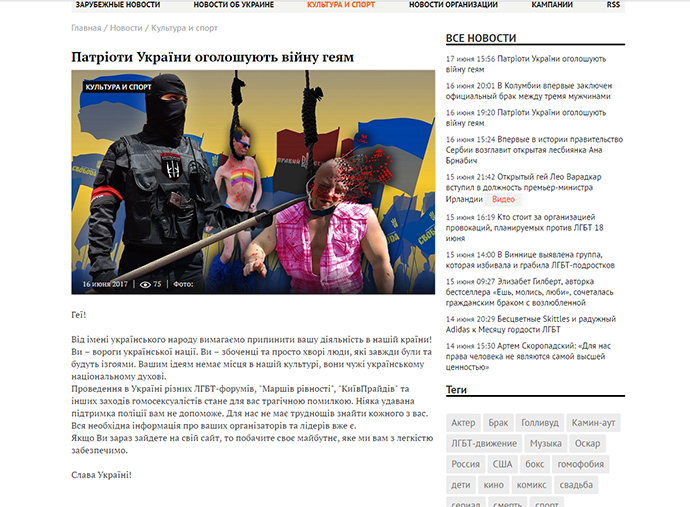 Як повідомляє Гей-альянс Україна, невідомі зламали сайт українського ЛГБТ-руху, розмістивши на його головній сторінці картинку з зображенням розправи над ЛГБТ-активістами.