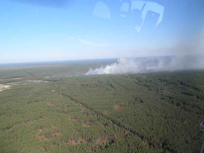 Як повідомлялося, 29 червня о 12:35 у Зоні відчуження на території Луб’янського лісництва попередньо під час проведення технологічної вирубки лісу для прокладання залізничної дороги сталося загорання порубкових решток деревини та лісової підстилки, яке розповсюдилось на площу близько 25 га.