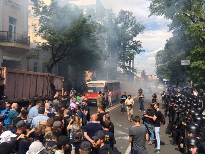 У свою чергу поліція, станом на 10:55 перекрила вулицю Грушевського.