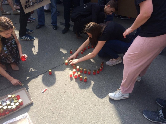 Учасники акції також запалюють свічки на згадку про Павла Шеремета.