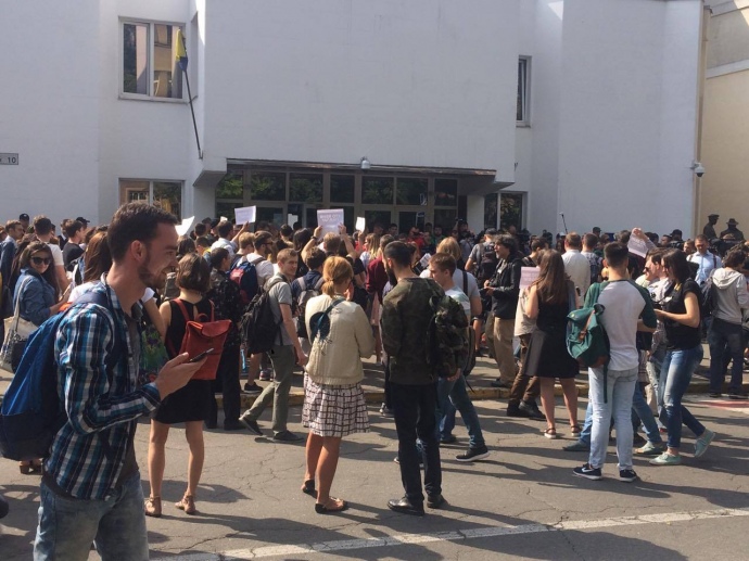 Прямо до дверей установи прикріпили банер "Хто вбив Павла?".