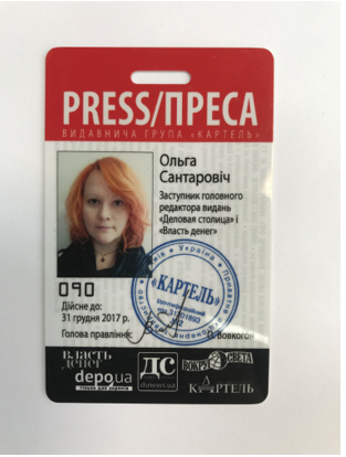 Посвідчення під номером 090 було видано заступнику головного редактора видань "Деловая столица" і "Власть денег" Ользі Сантарович, а не Анджеліні Діаш де Кінташ, як зазначено в підробленому документі.