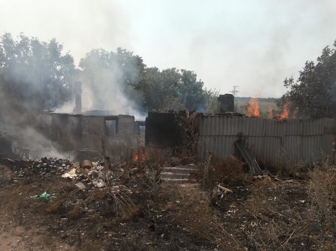 Внаслідок обстрілу бойовиками зі стрілецької зброї та крупнокаліберних кулеметів з використанням запалювальних куль спочатку загорілася трава, а потім вогонь перекинувся на три житлові будинки по вулицях Мересьєва, Лєскова та Вернадського.