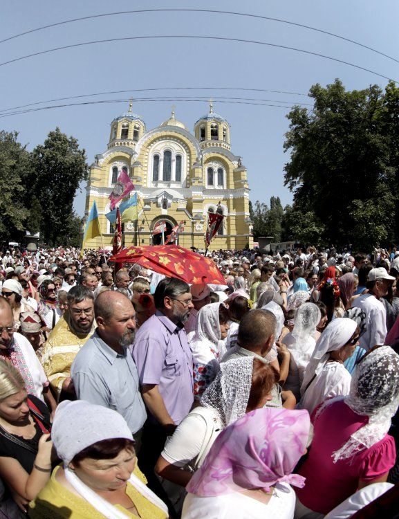 – На Володимирській гірці у Києві відбувся молебень з нагоди річниці Хрещення Київської Русі. Зібралися більше п'яти тисяч віруючих.