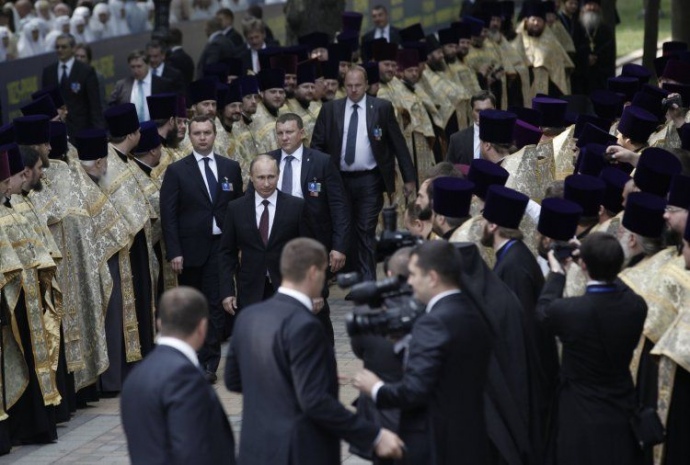 – У Києві пройшов урочистий молебень з нагоди святкування 1025-річчя Хрещення Русі. На нього приїхали зокрема російський президент Володимир Путін та патріарх Кирило. Противники візиту цих гостей мітингували на Майдані. Їх затримали та оштрафували.