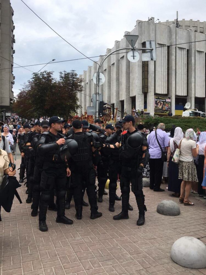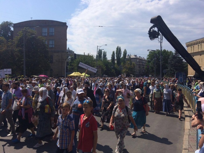 У Києві триває хресна хода прихожан православної церкви, присвячена річниці хрещення Київської Русі-України, правоохоронці забезпечують охорону громадського порядку у центрі міста.