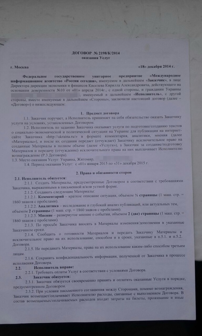 "Житомирський журналіст з 2014 року на замовлення керівництва пропагандистських державних російських інформагентств створював тенденційні публікації. Тематику та бажаний зміст матеріалів він отримував поштою або на месенджер, іноді "інформаційному найманцю" дозволялося самому обирати тему", – заявляє служба.