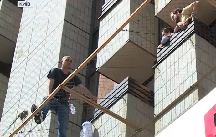 Як повідомлялося, у центрі Києва невідомий чоловік віком близько 40 років в цивільному одязі погрожує стрибнути з 3-го поверху готелю "Хрещатик".