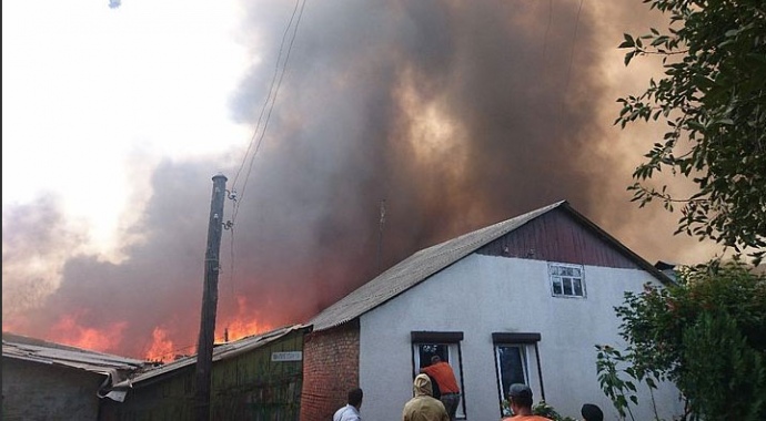 "Зараз загорілося близько 25 будинків. Найближчі квартали відключені від газу та електропостачання", - сказав журналістам Кондратьєв.
