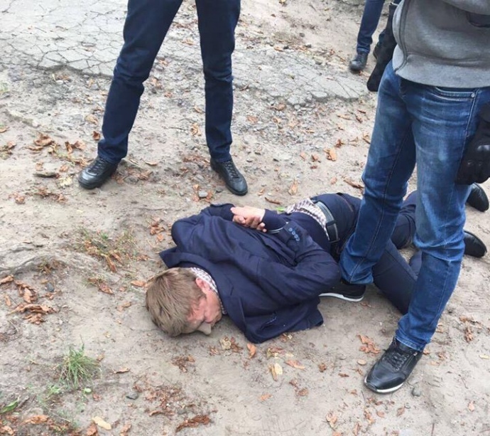 Чоловіка затримано в порядку ст. 208 Кримінального процесуального кодексу України після отримання частини хабара у сумі 15 тисяч доларів США.