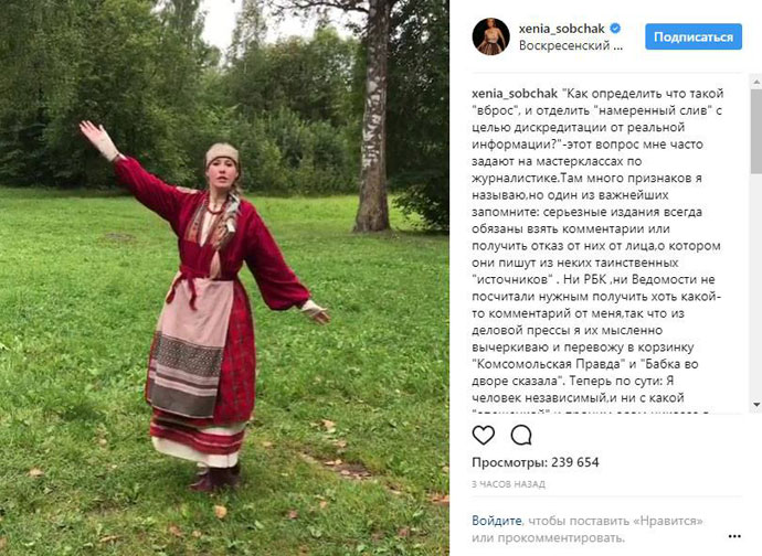 Російська телеведуча Ксенія Собчак, назвала "вкидом" інформацію про те, що вона може бути суперником президента РФ Володимира Путіна на наступних президентських виборах, і заявила, що не збирається вести справи з адміністрацією Кремля.