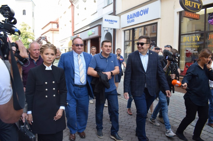Раніше повідомлялося, що у Жешуві Саакашвілі дасть прес-конференцію, однак його плани змінилися, і брифінгу не буде. Там в одному з кафе він провів зустріч з Юлією Тимошенко та євродепутатом Яцеком Саріуш-Вольським.
