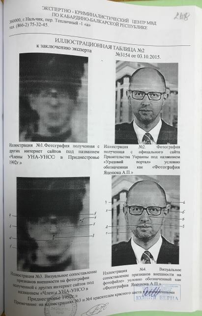 Про це свідчать результати російської експертизи, датованої 2015 роком, з матеріалів справи, які оприлюднила в середу прес-секретар Яценюка Ольга Лаппо.