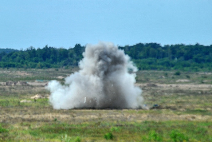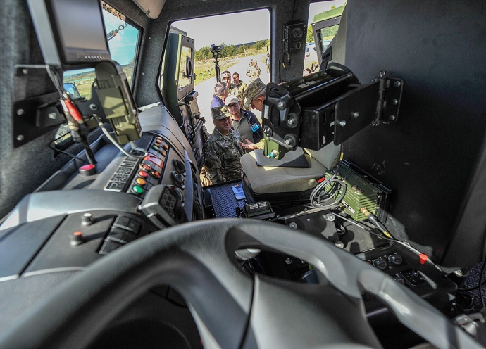 "Розвідувально-ударний комплекс "Сокіл", який ми сьогодні випробували, складається з однієї розвідувальної та трьох ударних бойових машин, тому він здатний знаходити та точно вражати цілі, використовуючи, залежно від завдань, боєприпаси фугасної, осколково-фугасної та термобаричної дії" – відзначив Турчинов.